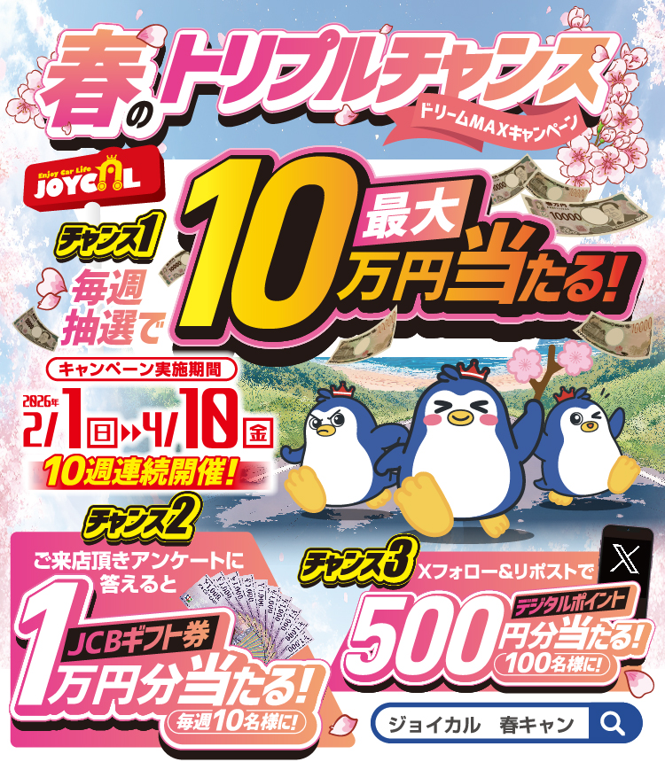☆ ジョイカル 最大10万円当たる! 春のドリームMAXキャンペン ☆